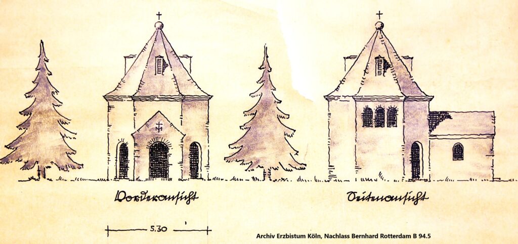 Ein erster Entwurf des Bensberger Architekten Bernhard Rotterdam sah 1932 eine große, runde Kapelle mit einem Säulengang um das alte Pützchen herum vor; eine neue Pergola sollte den Bereich vor der Kapelle zusätzlich einfassen und den Pilgern etwas Schatten spenden: