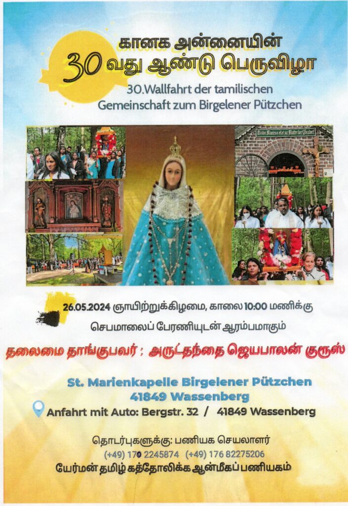 Eine ganz besondere Wallfahrt ist die schon seit über 25 Jahren im Sommer stattfindende Wallfahrt der tamilischen Gemeinschaft zum Birgelener Pützchen. Wie im katholischen Christentum gibt es auch im hinduistischen Glauben die Verehrung der Gottesmutter Maria.